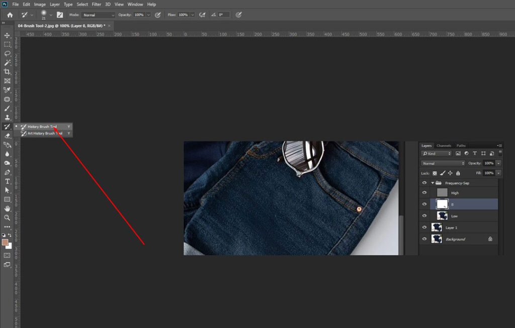 If you accidentally overuse the Healing Brush or apply edits in the wrong area, just select the History Brush Tool. Then, brush over the area where you want to bring back the original detail. It works like a soft, targeted version of Ctrl+Z, helping you fix mistakes without undoing your entire progress.